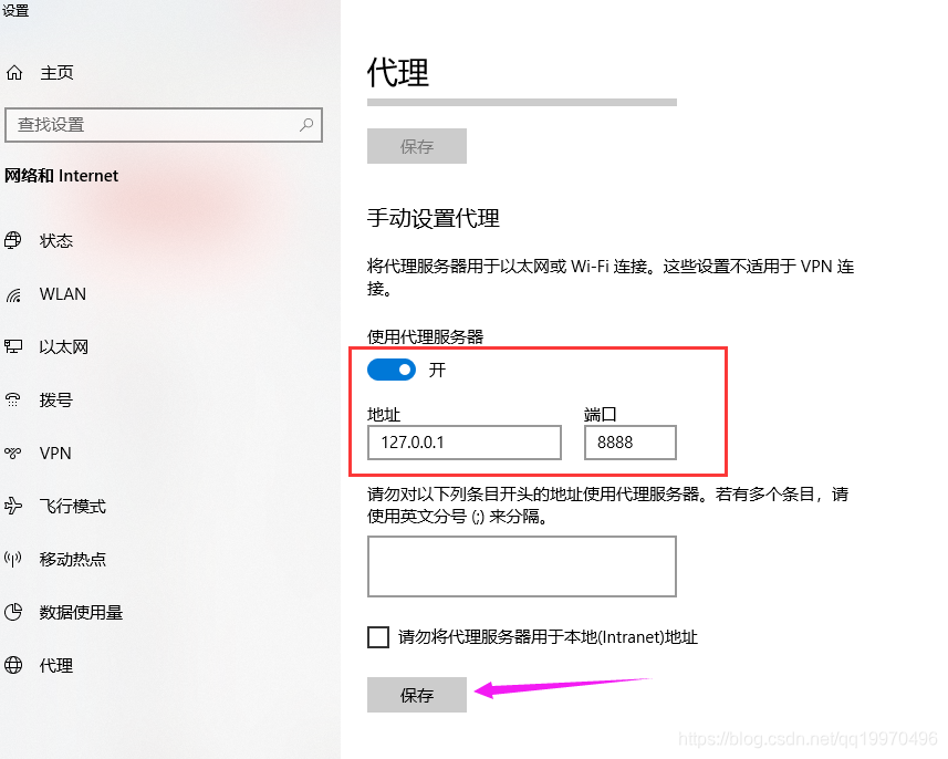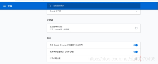 此此选择chrome浏览器,点击“高级”,在“系统”模块中点击“打开代理设置”按钮;如图所示进行设置;