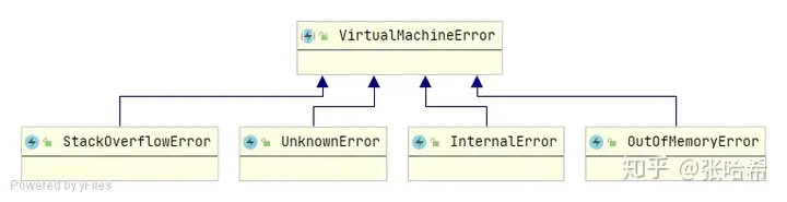 我们比较关心的就是 StackOverflowError 与 OutOfMemoryError,剩下的 InternalError 一般是内部使用错误,UnknownError 是虚拟机发生未知异常,这两种我们这里不讨论。