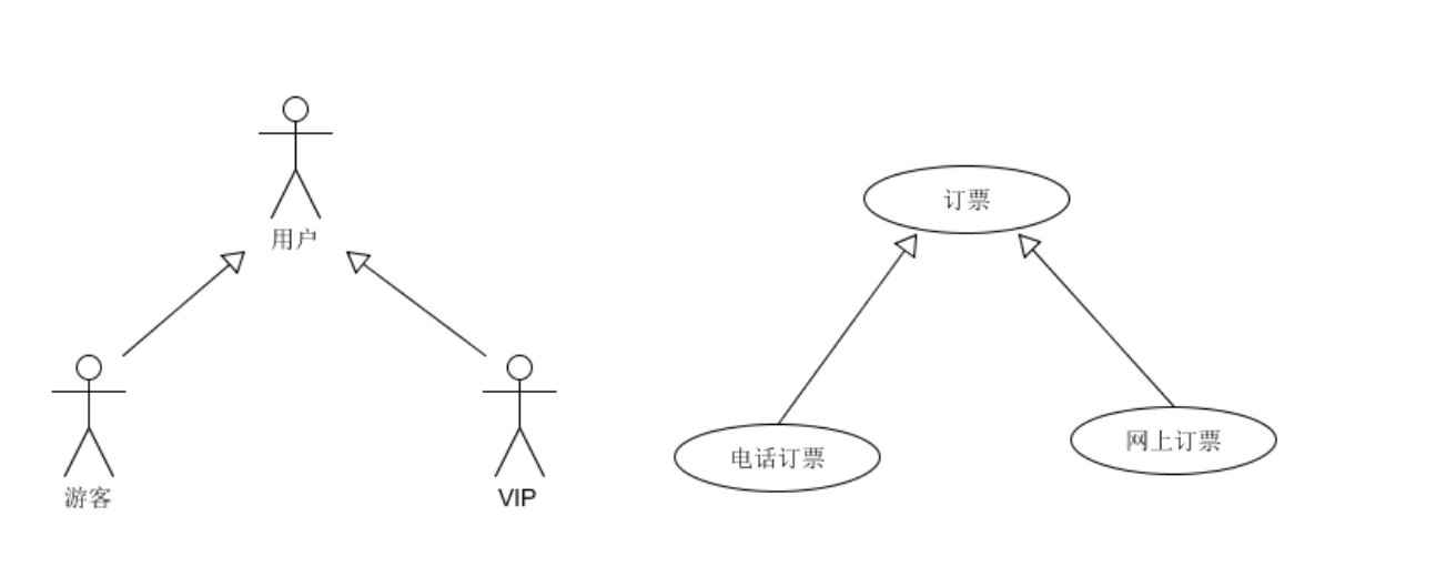 就是通常理解的继承关系。在实际应用中很少使用泛化关系,子用例中的特殊行为都可以作为父用例中的备选流存在。