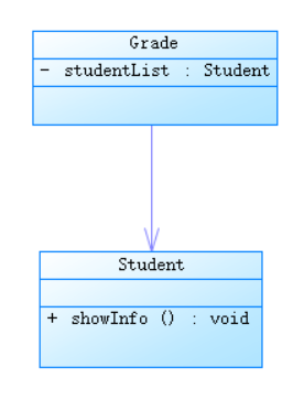 | 关联 | 箭头指向成员变量类。 | 两个类之间的关联,也可以是一个类和自身的关联。比如班级类和学生类,学生类作为成员变量存在于班级类中。 | ![]() |