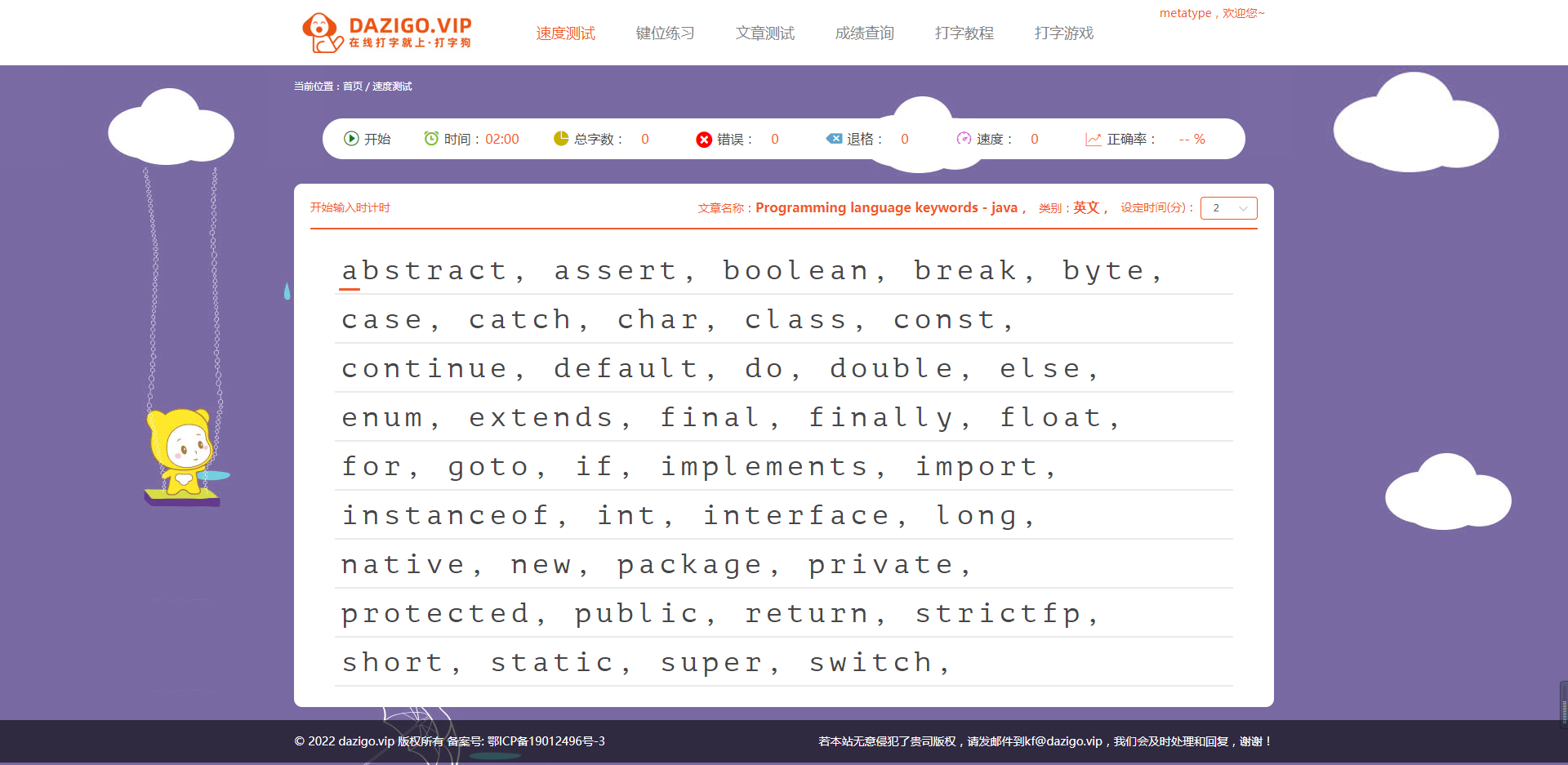 打字练习-编程语言关键字系列-java