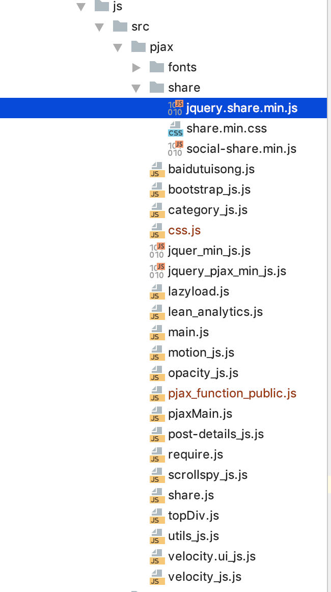 在pjax中是局部刷新的也就是局部加载的,而以上的文件,next主题中本身是没有的,原来的文件名称没有我的_js后缀,在目录next->source->js->src下面,
