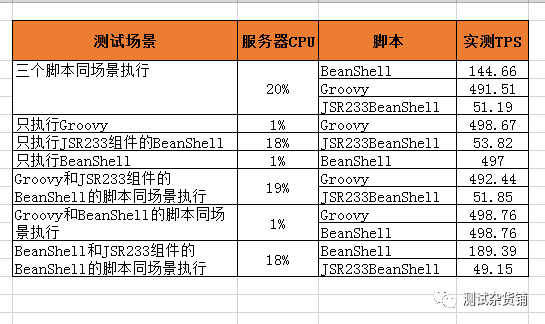 同一个场景中,如果有的脚本使用了JSR233组件下的BeanShell语言,那会严重影响当前场景下的所有BeanShell组件模块的性能;同时也会稍微影响JSR233组件下的Groovy语言的性能,导致其TPS略有下降。