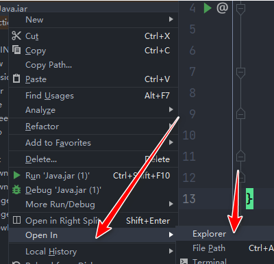 右键刚才的包,选择Open in>Explorer,直接打开包的所在位置