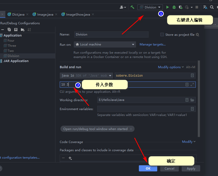 E:\HelloJava\Java\out\artifacts\Java_jar3>java -jar Java.jar 10 3 //10和3是我编写程序需要传入的参数,你没有就不写