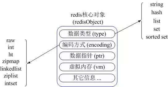 首先 Redis 内部使用一个 redisObject 对象来表示所有的 key 和 value,redisObject 最主要的信息如上图所示:type 代表一个 value 对象具体是何种数据类型,encoding 是不同数据类型在 redis 内部的存储方式,比如:type=string 代表 value 存储的是一个普通字符串,那么对应的 encoding 可以是 raw 或者是 int,如果是 int 则代表实际 redis 内部是按数值型类存储和表示这个字符串的,当然前提是这个字符串本身可以用数值表示,比如:”123″ “456”这样的字符串。