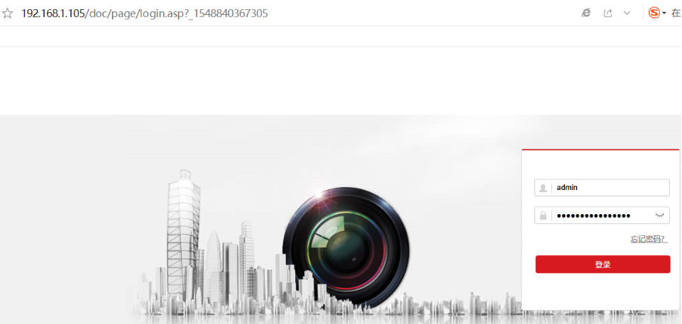 然后我们重新在电脑的浏览器地址栏中输入摄像机的ip地址192.168.1.105,发现可以进去了,然后登录后,我们可以查看摄像机的画面了。