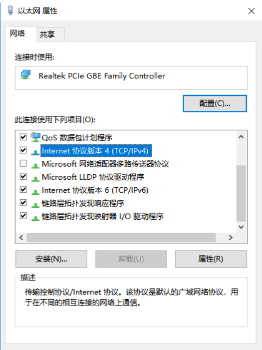 鼠标左键双击“Internet 协议版本4(TCP/IPv4)”: