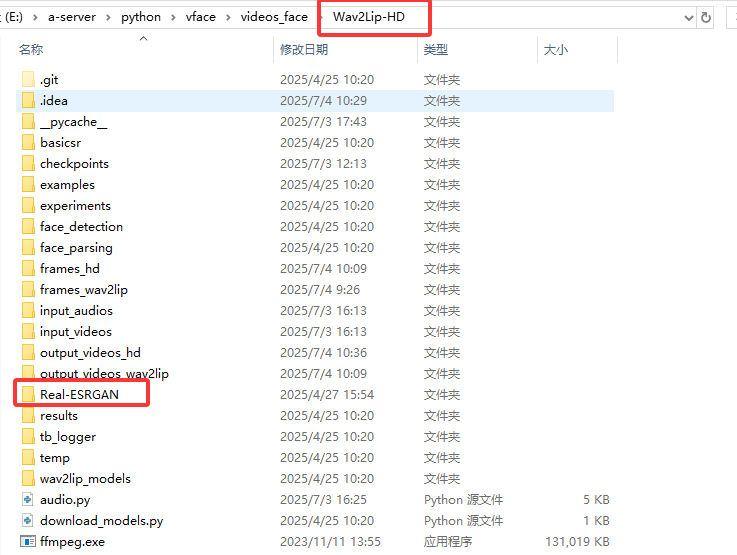 Real-ESRGAN解压后放到Wav2Lip-HD文件夹中。