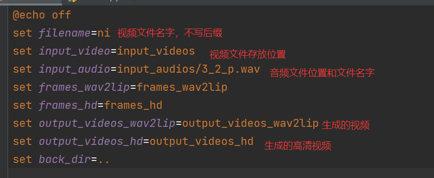 需要先修改一下文件:run_final.bat。将视频和音频放到相应位置,然后修改这里的文件名字。