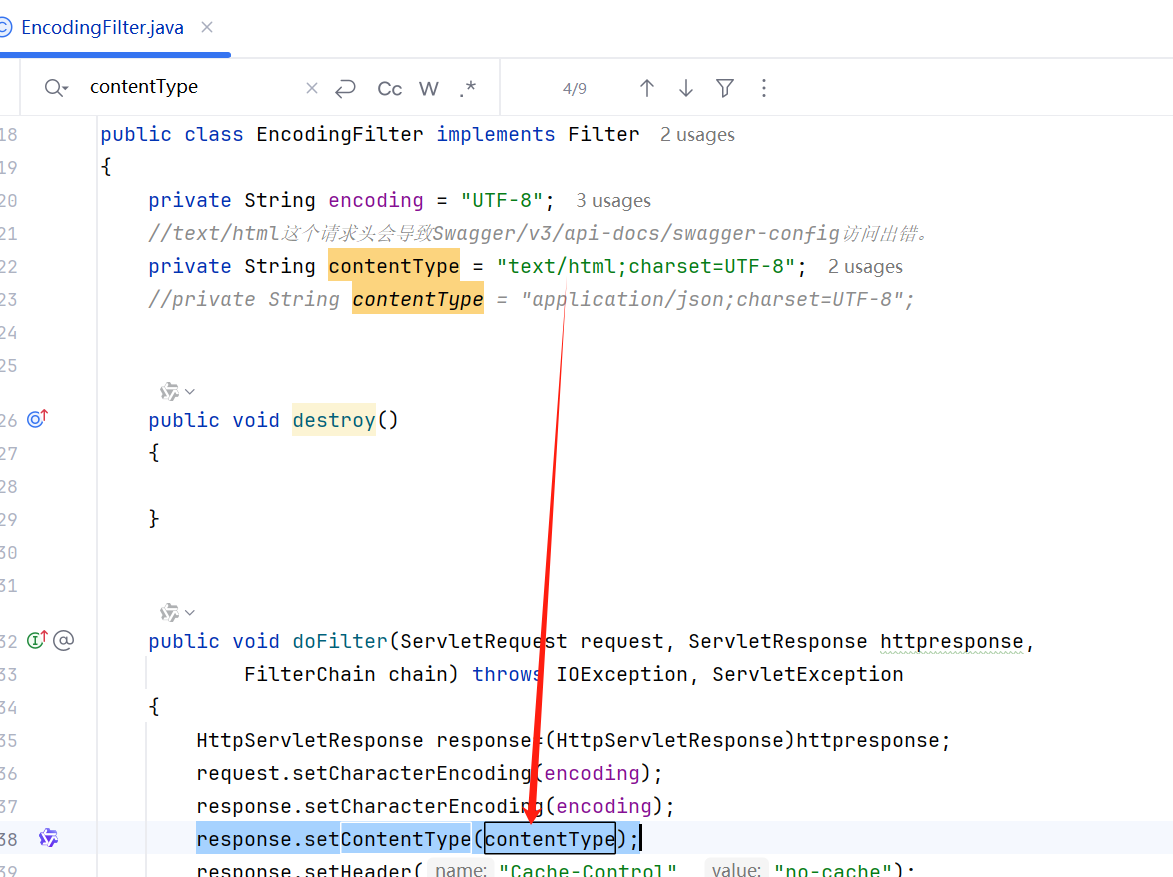 发现问题所在了:在EncodingFilter过滤器filter中response的contenttype是