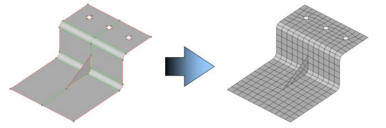 HyperWorks的划分网格前后,HyperMesh 将保留模型中的曲边特征,即在曲边不被压缩的情况下,几何模型上的曲边在网格划分后仍然存在。如果模型曲面正确连接,HyperMesh 将在曲面共享边界位置放置若干节点,然后相连接的两个曲面产生相同数量的单元。