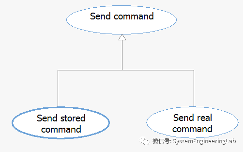 用例间的泛化关系表示一种继承,是从抽象到具体的一种演化。子类型的用例继承父用例的内容,并在此基础上进行重新定义或添加新的父用例不具备的关系或行为。在SysML中,泛化关系采用带空三角箭头的实线表示。如下图: