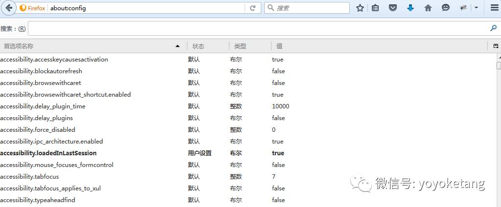 2.设置各项参数,参数可以通过在浏览器地址栏中输入about:config查看