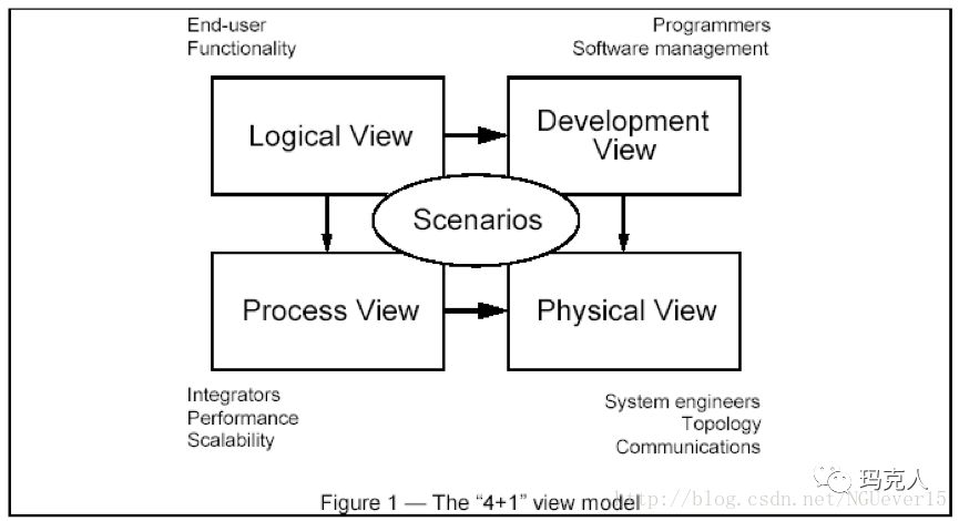 新建project后会有五种模式,其中前几种代表不同的工程设计实战模式,4+1view mode是四加一模型,以场景为模型中心,如图所示,包含逻辑视图,开发视图,过程视图与物理视图。好处在于场景是内聚的,对于行业属性特别强的应用场景,比如CT机器的操作系统设计、飞机飞控系统交互设计等4+1更有利于设计提升收益,迭代几次后易形成价值领域模型。