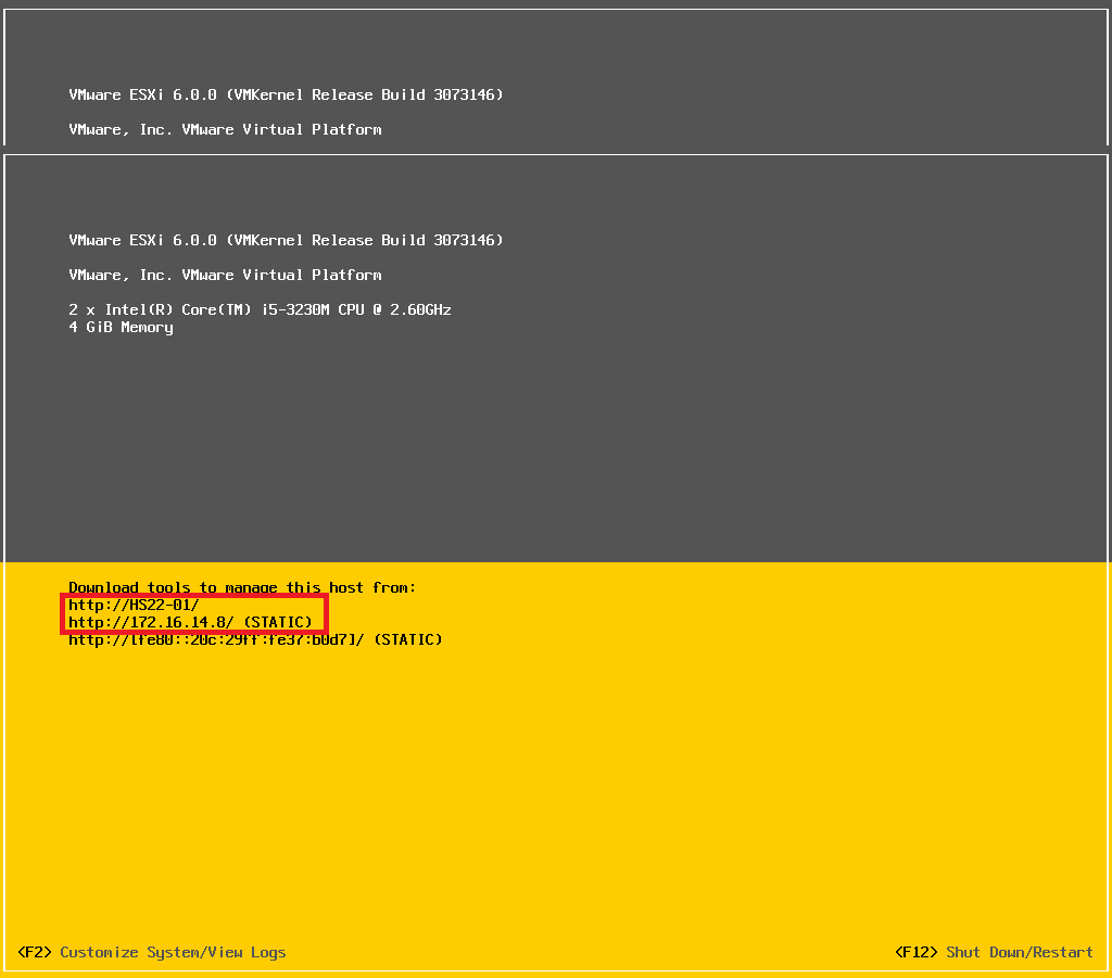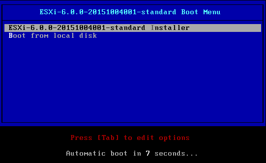 1) 下载ESXI6.0U1的安装镜像文件(VMware-VMvisor-Installer-6.0.0.update01-3073146.x86_64.ISO),并将其刻录成光盘,放入CD-ROM中,启动服务器并从光盘引导,安装系统经过一段时间会自动进入引导界面