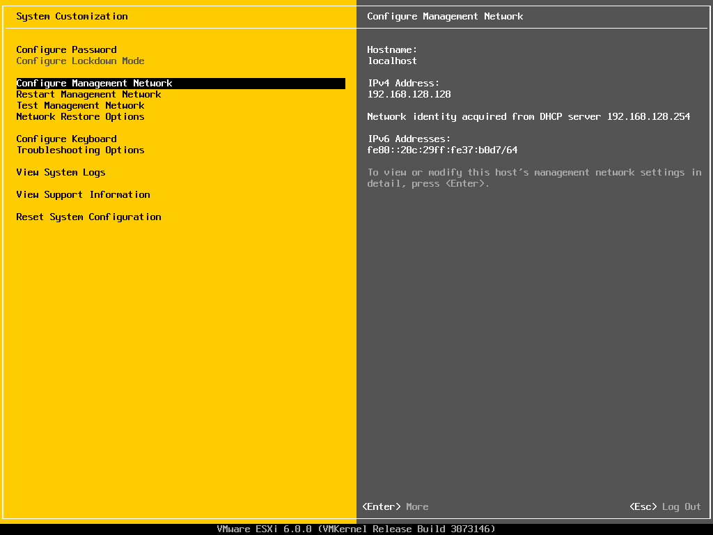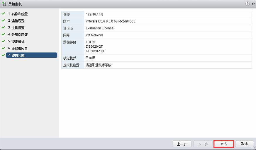 至此ESXi的所有配置完成,后续操作将在vSphere Client端进行。