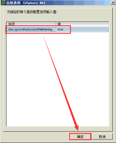 在“选项”中双击输入 “das.ignoreinsufficienthbdatastore”,在“值”中双击输入“true”。
