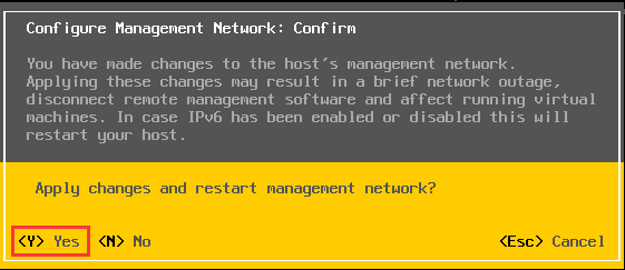 7) 网络配置完成后,按“ESC”弹出出现确认配置网络的界面,按“Y”确定保存以上所有配置