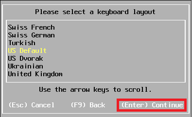 7) 选择键盘类型,默认即可,按“回车”进入下一步