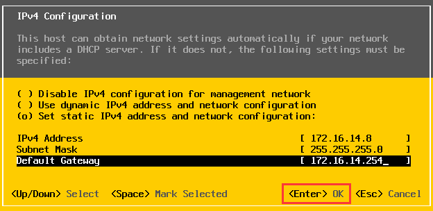 选择“IPv4 Configuration”,按“回车”进入IP地址配置界面