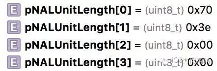 => 0x29 = 41,以大端字节序表示。直接赋值给整型变量,则iOS以小端字节序读取,结果数值为687865856,显然与预期不符,需要转换。转换思路就是逐字节读取,数组或移位操作都可实现,甚至还能偷懒,调用Core Foundation的接口CFSwapInt32BigToHost
