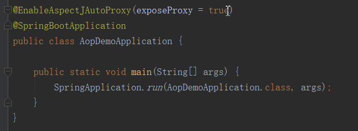 要解决上述Spring AOP失效的问题,有两个方法,一个是将isLegal方法跟login方法写在不同的类里,这样一来,当login方法调用isLegal方法时,Spring会注入相应的代理对象,从而可以调用到isLegal方法的代理逻辑。另一个方法是在调用isLegal方法时先获取当前上下文的代理对象,再通过该代理对象调用被增强了的isLegal方法,这样一来也能解决AOP失效的问题。实际上Spring AOP为我们提供了获取当前上下文代理对象的方法,使用起来非常方便,首先需要在AOP配置里暴露代理对象,在Spring Boot中可以通过注解@EnableAspectJAutoProxy(exposeProxy = true)进行配置:
