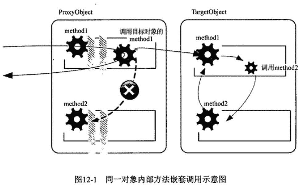 如果目标对象中的原始方法依赖于其他对象,那么Spring会注入所依赖对象的代理对象,从而保证依赖的对象的横切逻辑能够被正常织入。而一旦目标对象调用的是自身的其他方法时,问题就来了,这种情况下,目标对象调用的并不是代理对象的方法,故被调用的方法无法织入横切逻辑。