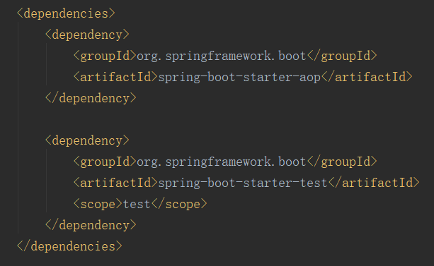 前面说了这么多,接下来我们就用Spring AOP来实现简单的日志记录功能吧。假如我们已经有了一个功能完善的用户登陆接口,现在我们需要在用户调用登陆接口的前后记录下用户的登录行为日志。要实现该功能,最简单的方法就是在原有的登录逻辑里加入日志记录代码,但是这样一来势必需要对原有的登录逻辑进行修改,容易引入新的bug,因此我们决定使用AOP来实现日志记录的功能。在本实例中,我们搭建一个Spring Boot工程,并引入Spring AOP依赖,pom文件依赖关系如下: