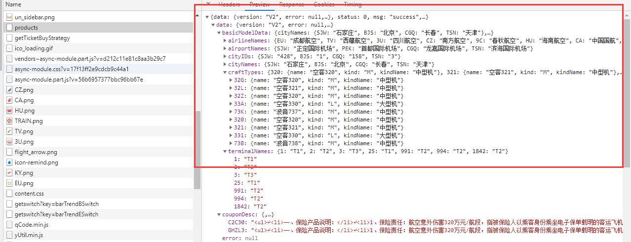 在这里面我们可以找到请求航班信息的其实是https://flights.ctrip.com/itinerary/api/12808/products这个URL。