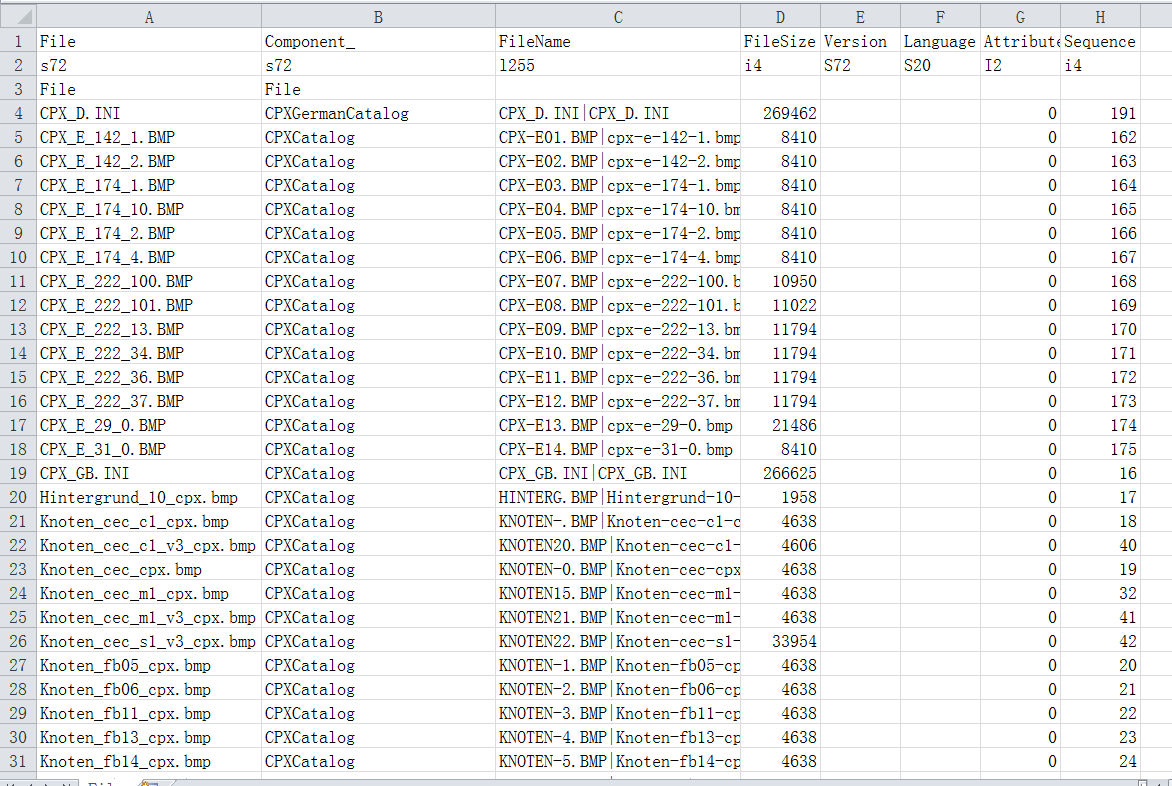 这一步是最为复杂的。主要在于压缩的顺序问题。文件的顺序在我们之前的File.idt文件中,可以用excel文件打开查看: