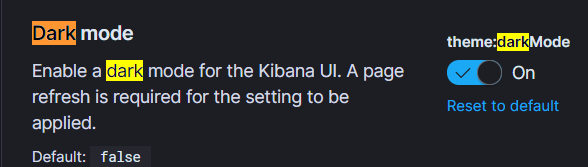 用户可以选择打开主题:Kibana->高级设置->dark Mode,而不是必须在很多地方打开黑暗模式,它将适用于所有应用程序。