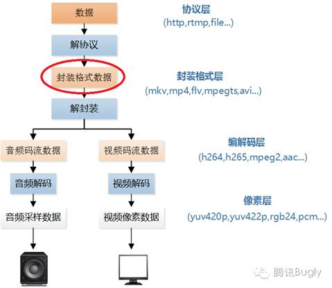 这个其实跟网络分七层模型一个原理。解耦和,降低依赖,底层给上层提供基础功能,底层和上层都都可以单独扩展,可以以多种方案组合编码与封装,比如MP4与H264、MP4与MPEG、TS与H264等等。比如这里面的这边文章的编码就只负责将最原始的音频和视频数据就行压缩,而压缩完的数据要怎么组织就拜托给上层的封装,封装接到视频音频数据负责给数据编号,指定同步协议,加入字幕等操作。经过封装后,得到的就是可以播放的上面提到的视频文件MP4或者MKV等等。把这个过程反过来就是上图描述的视频播放的过程。