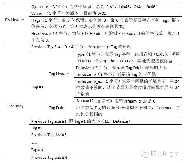 每个Tag前面还包含了Previous Tag Size字段,表示前面一个Tag的大小。Tag的类型可以是视频、音频和Script,每个Tag只能包含以上三种类型的数据中的一种。图2展示了FLV文件的详细结构。