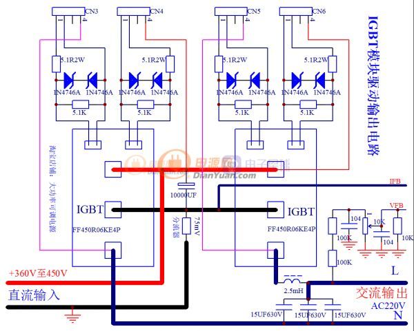 功率够大, 每一路采用4只450A的IGBT并联使用, 总达2000A以上。
