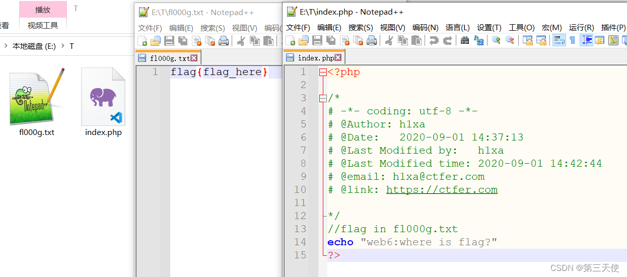 存在源码的压缩包没有删除,访问 /www.zip。知道了 flag 所在的文件和路径,直接访问 /fl000g.txt