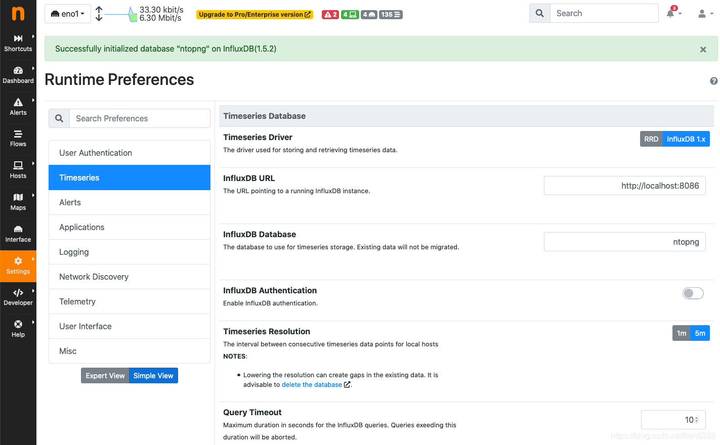 如果ntopng和influxdb在同一台机器的话,influxdb url就可以是http://localhost:8086/