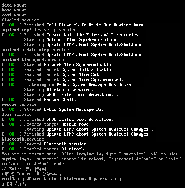 银河麒麟V10 SP1忘记账户密码后重置/更改账户密码