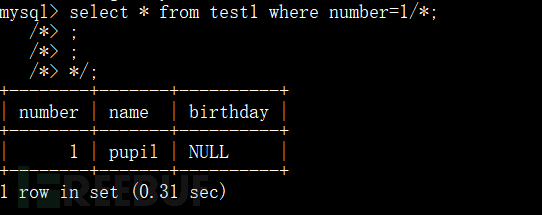 以下是Mysql中可以用到的多行注释符(mysql下需要闭合):