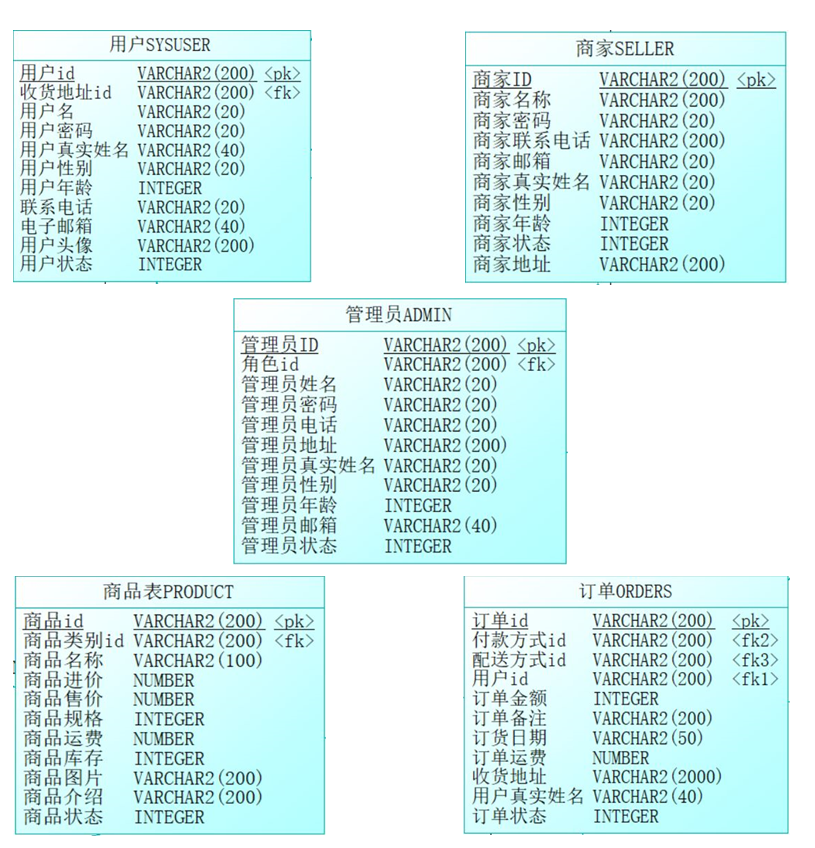 (1)部分数据库的设计情况