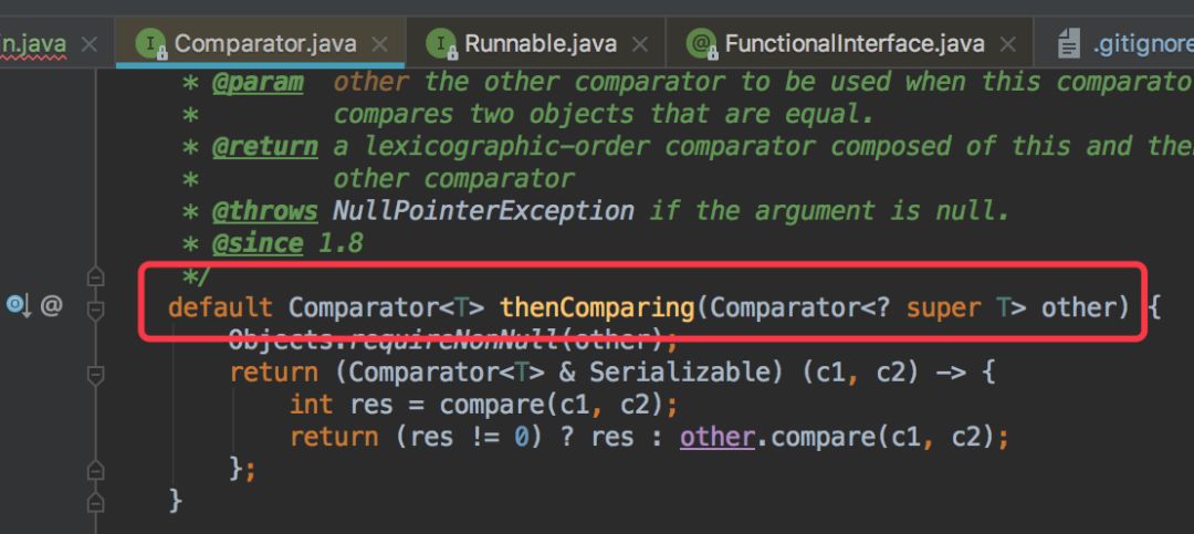我们注意到Runnable有个注解 @FunctionalInterface,它是jdk8才引入,它的含义是函数接口。它是lambda表达式的协议注解,这个注解非常重要,后面做源码分析会专门分析它的官方注释,到时候一目了然。