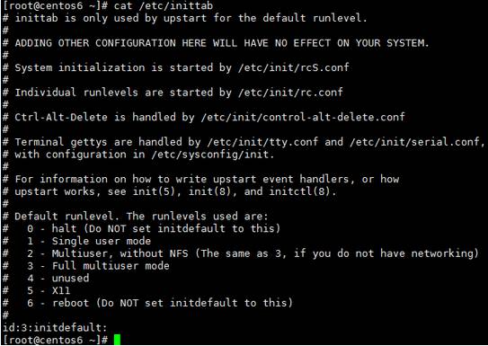 注意:在init配置文件:/etc/inittab中,有一行内容是定义/etc/rc.d/rc.sysinit,此脚本文件是负责完成系统初始化的脚本文件。