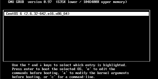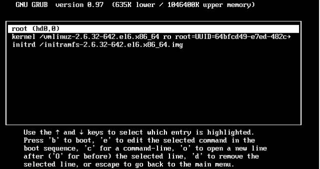 1)编辑grub菜单,选定要编辑的title,而后使用e命令