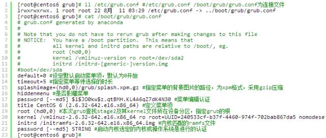 stage2一般是挂载至/boot/grub/目录下;grub也有自己的配置文件:/boot/grub/grub.conf且通常有个符号链接文件:/etc/grub.conf;