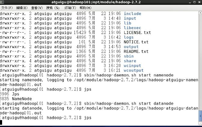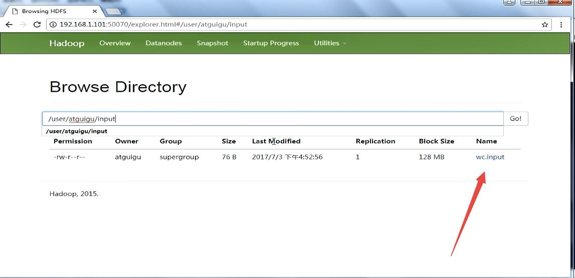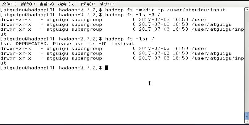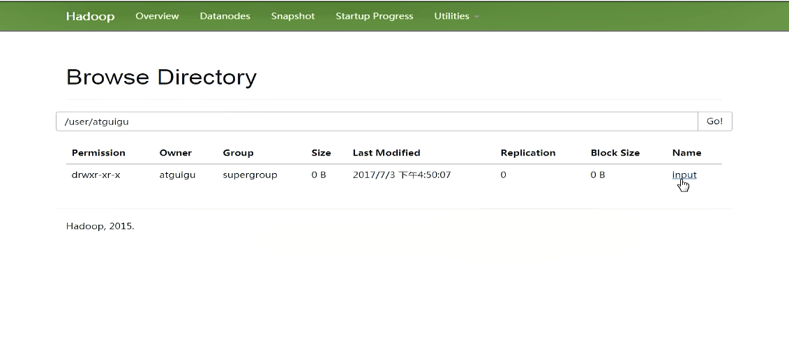 hadoop jar share/hadoop/mapreduce/hadoop-mapreduce-examples-2.5.0.jar wordcount /user/atguigu/mapreduce/wordcount/input /user/atguigu/mapreduce/wordcount/output