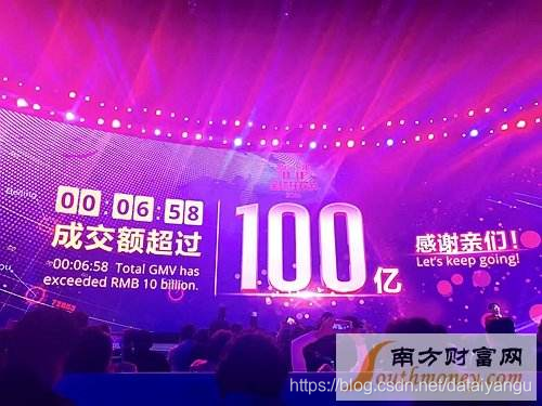 天猫双十一:2016年6分58秒,天猫交易额超过100亿