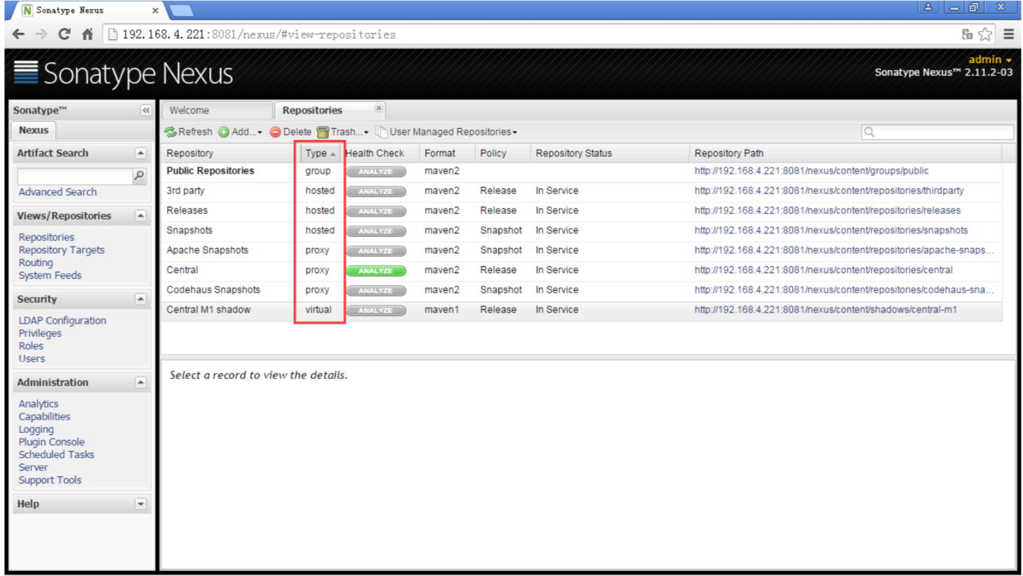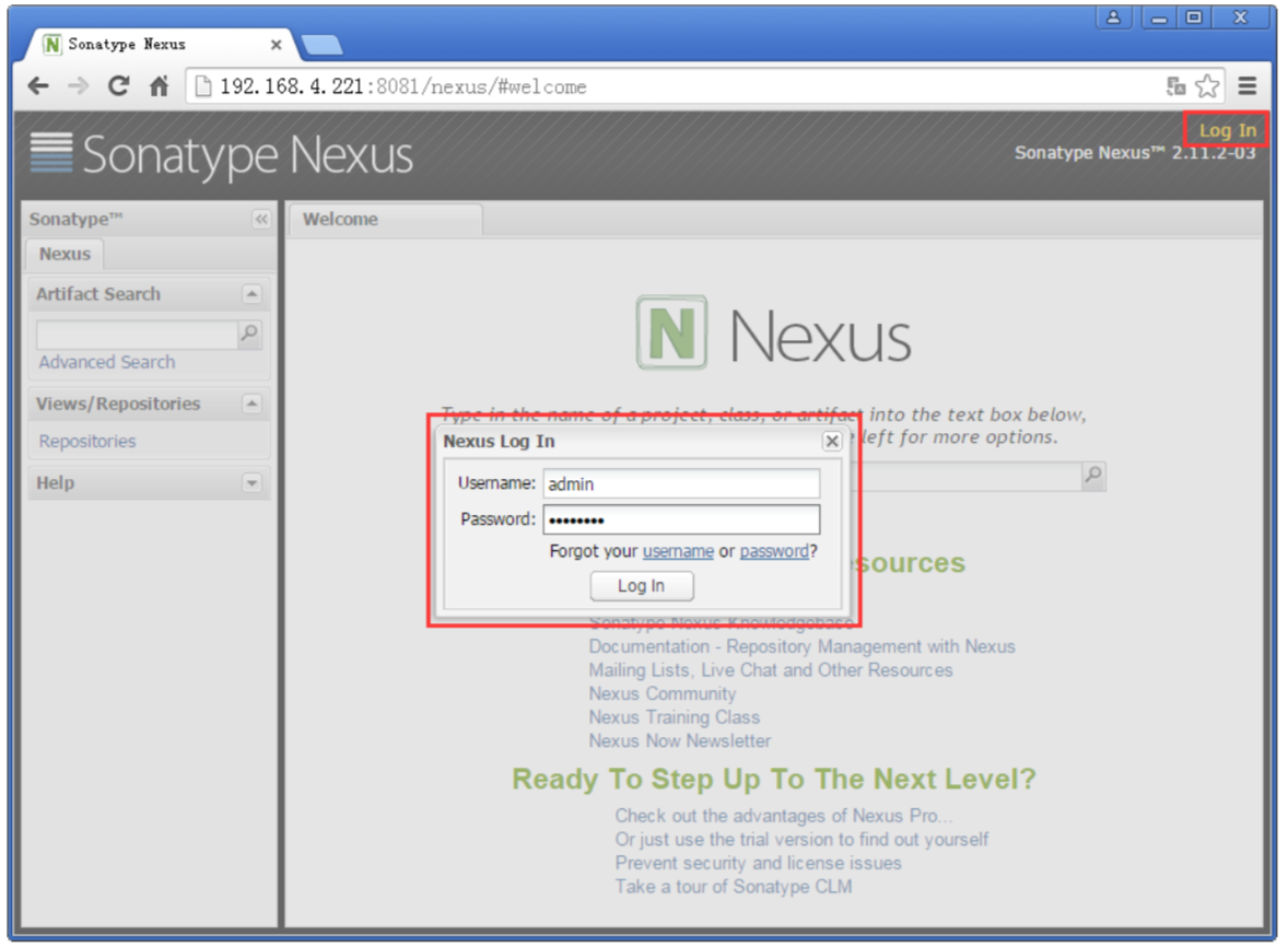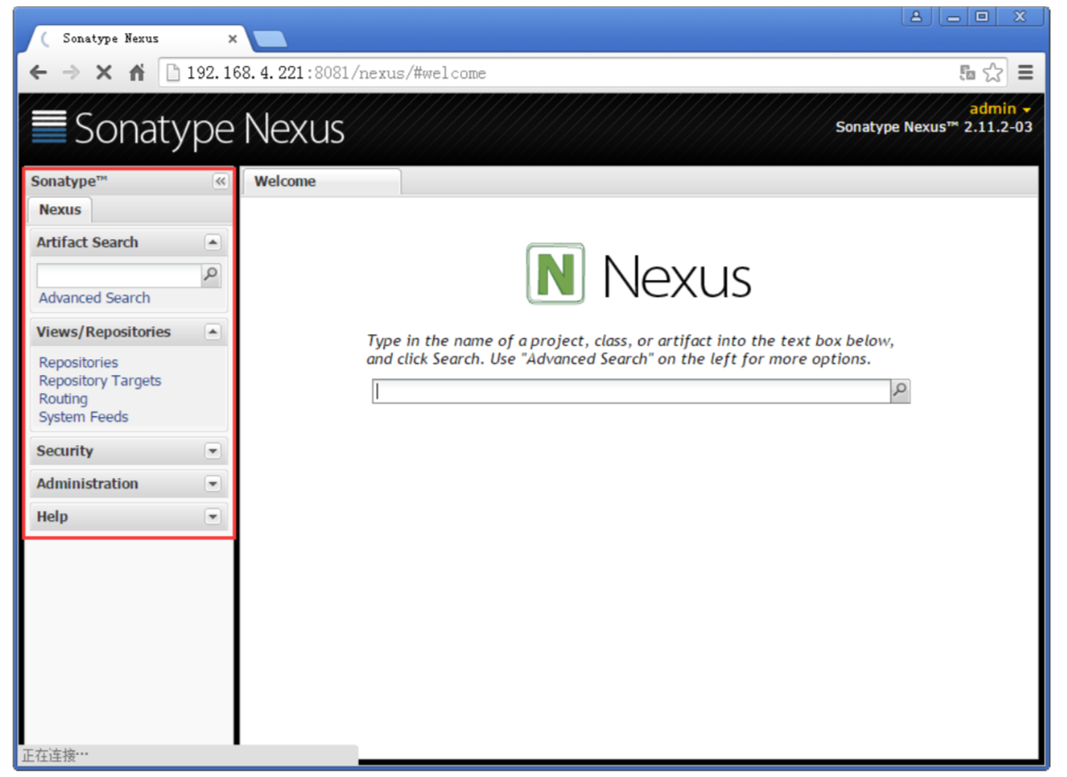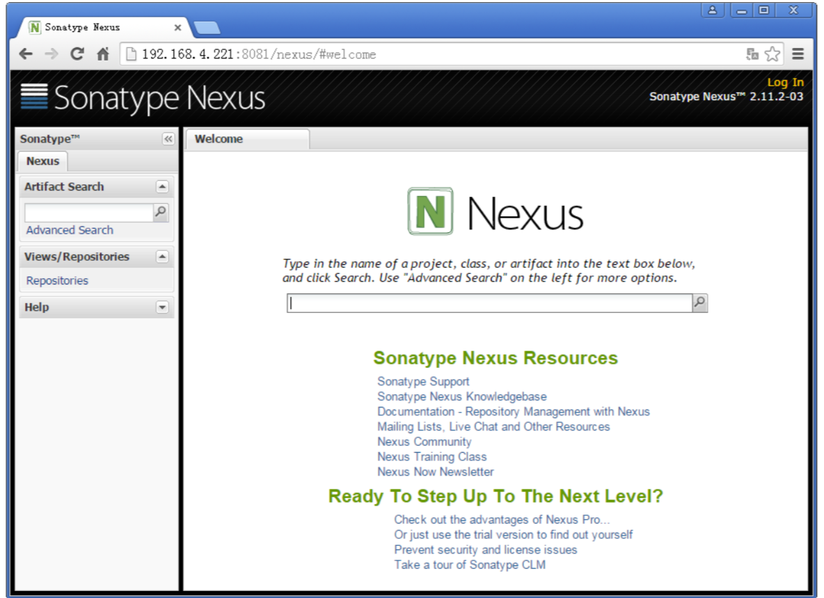 7、浏览器中打开:http://192.168.4.221:8081/nexus/