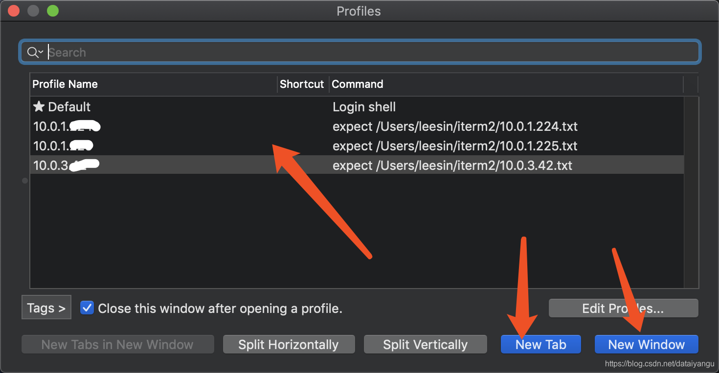 mac 使用iTerm2快捷登录远程服务器 正常使用ssh登录服务器: ssh -p port user@host user@host's password: 输入端口,用户名,服务器ip地址后,还需 ...