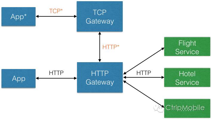 2014年携程为无线服务开发了Mobile Gateway,有两种类型:TCP Gateway和HTTP Gateway。 TCP Gateway设计用于App中Native业务网络服务,基于TCP协议之上设计了应用层协议,类似于RPC机制。TCP Gateway兼具了接入层和服务动态路由的功能,接入层的功能基于Netty实现,管理客户端的TCP长连接或者短连接;动态路由的功能基于Netfix开源的Zuul实现(Zuul is a gateway service that provides dynamic routing, monitoring, resiliency, security, and more. ),可以在TCP Gateway上实现服务路由、监控、反爬和用户鉴权等功能。