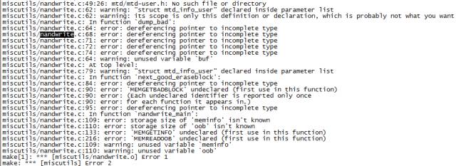 方法同上,将nandwrite,nanddump选项去掉。